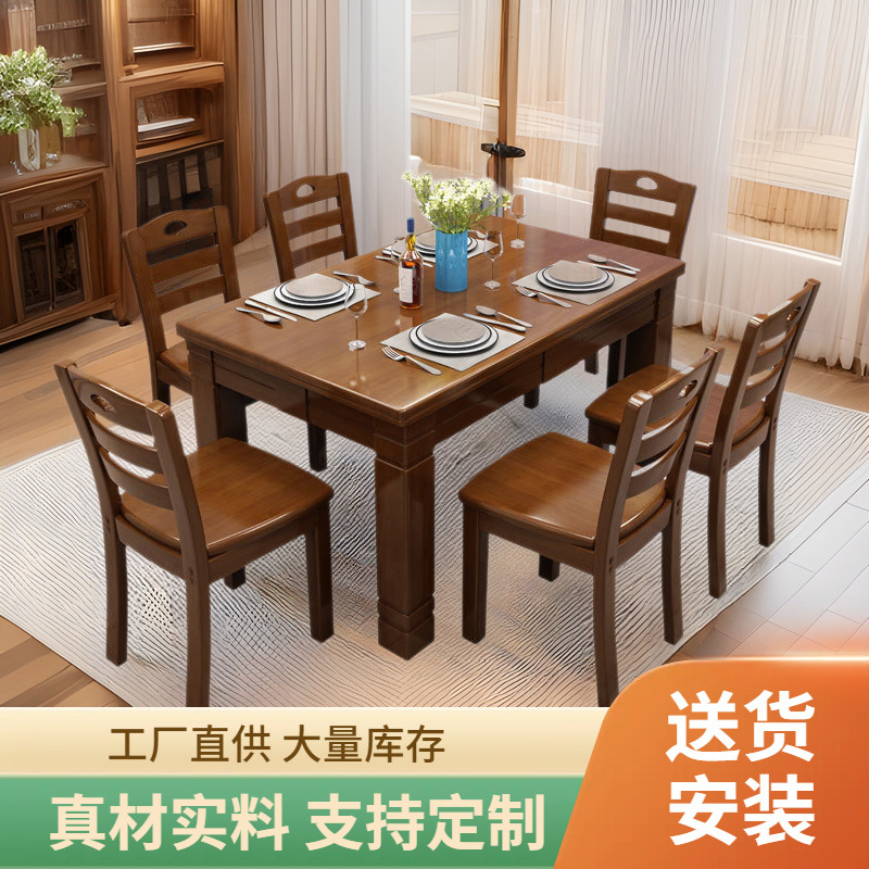 実木食卓椅子付き長方形中国式西洋食卓家庭用食堂テーブルと椅子の組み合わせ食卓