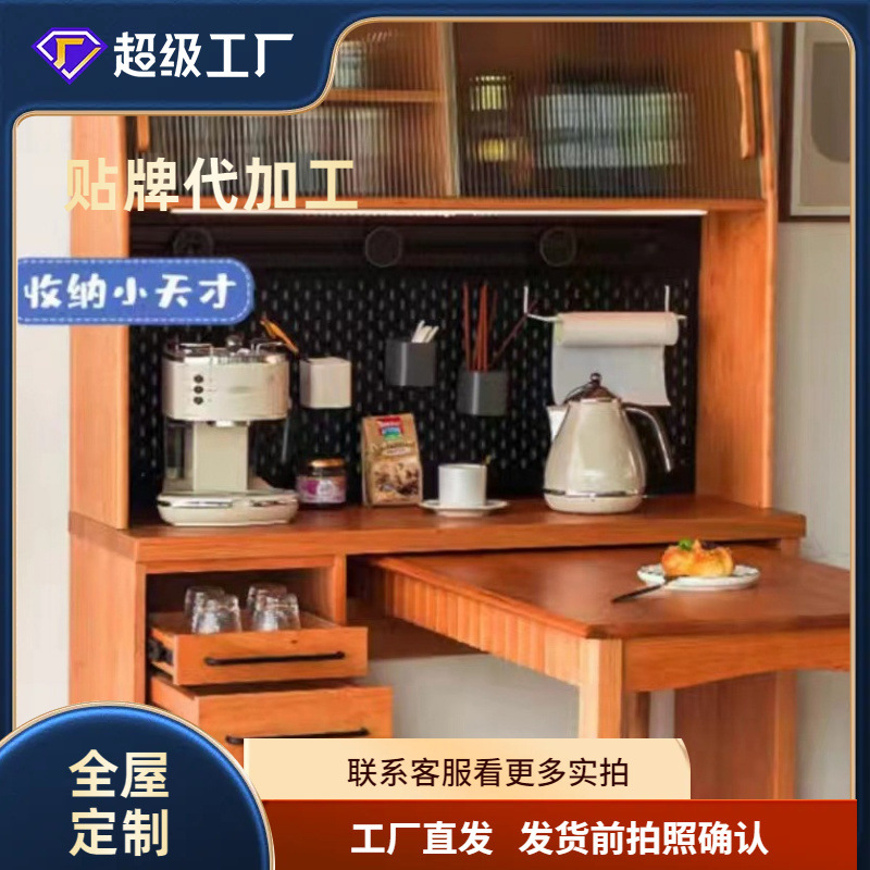 兄本花園のサイドキャビネットの実木の高いキャビネットの日本式の食器棚の北欧の食卓の一体は壁の棚の桜の木に寄りかかっています。