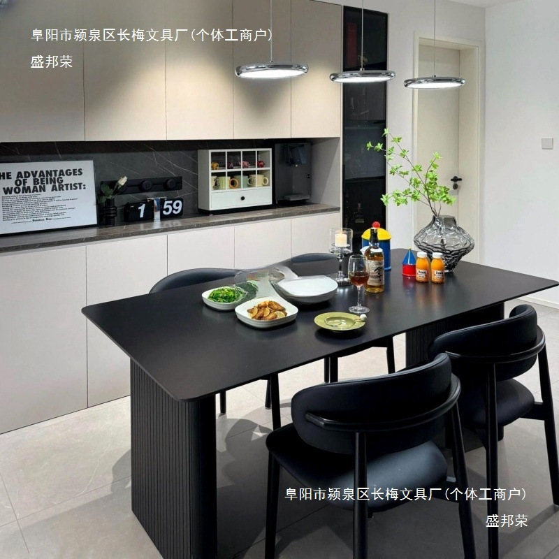 モダンライト高級ブラックスレートダイニングテーブルと椅子の組み合わせイタリアンスタイルホームダイニングテーブル長方形小さなアパートシンプル