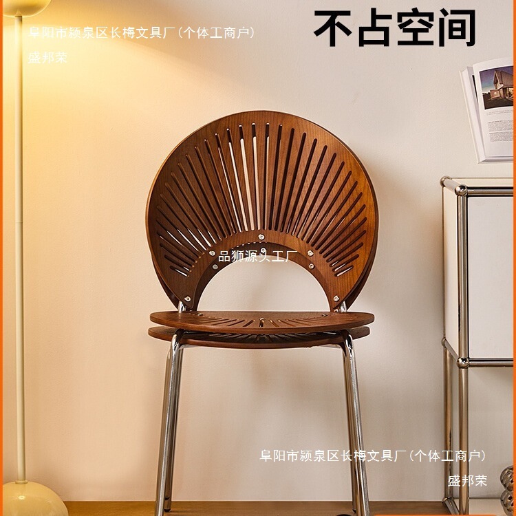 AL 無垢材ダイニングチェアシェルチェアホームシンプルな背もたれダイニングテーブルチェアレトロ中世ティーテーブルライト高級木製大人