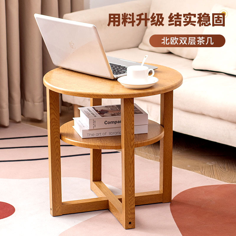 現物実木寝室コーヒーノートパソコン円形テーブルリビングソファのそばのベッドのテーブル