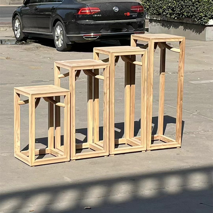 卸売り新中国式花架白作胚北楡木花盆架全実木緑羅鉢植え着地置物角花数