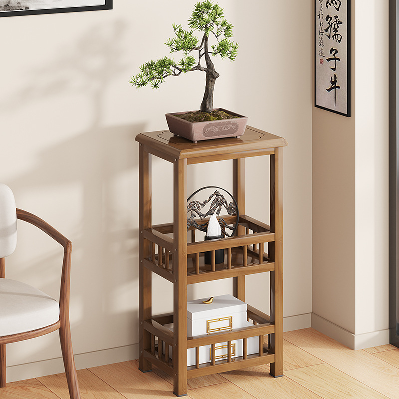室内花架客間テレビ盤の横に着地した新中国式花台実木置物棚緑の花盆棚