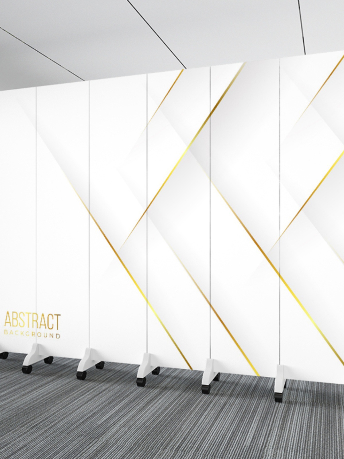 シンプルでモダンな屏風はリビングルームのオフィスを遮断します。