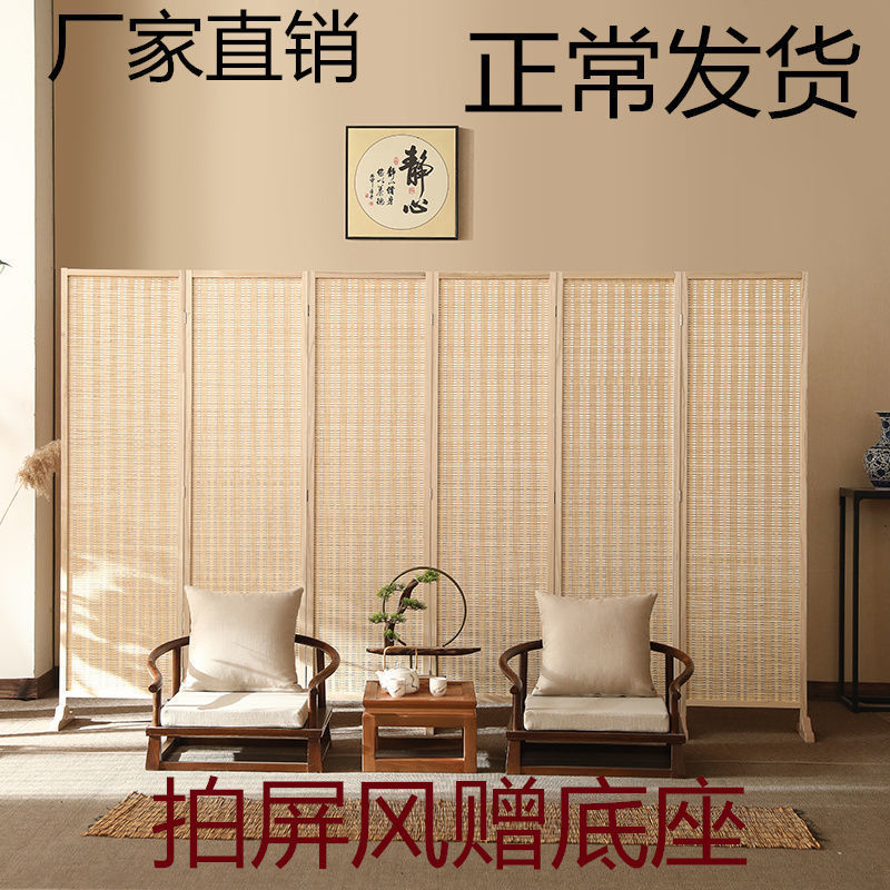 新しい中国風スクリーンパーティションリビングルームブロック背景茶室装飾風竹影テーマ折りたたみモバイル折りたたみスクリーン工場