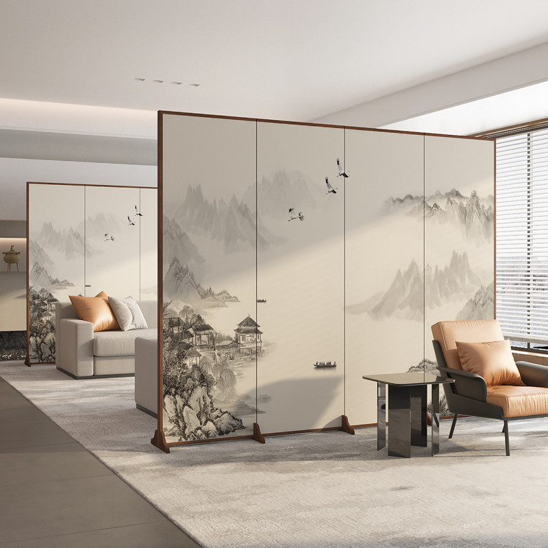铝合金屏风隔断客厅轻奢简约现代中式折叠移动山水酒店办公室遮挡