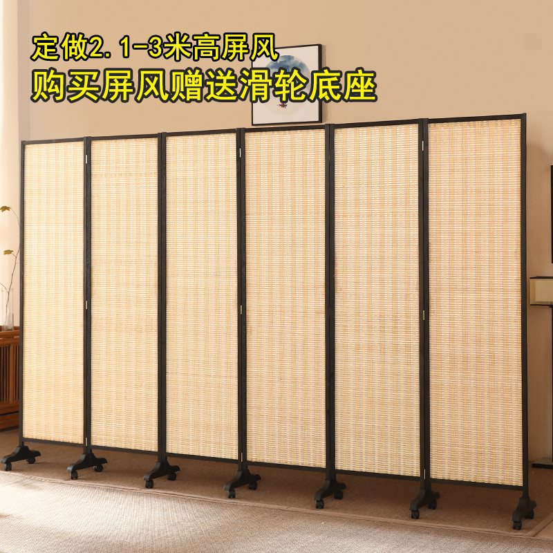 簡易竹実木屏風折り畳み押し引き部屋遮断壁移動客間門シンプル寝室遮蔽カーテン