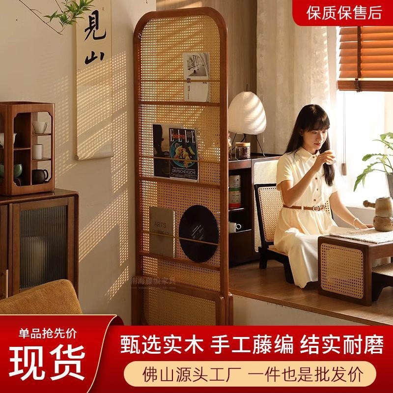 日本式藤編屏風遮断客間玄関寝室中古棚移動シンプル復古棚