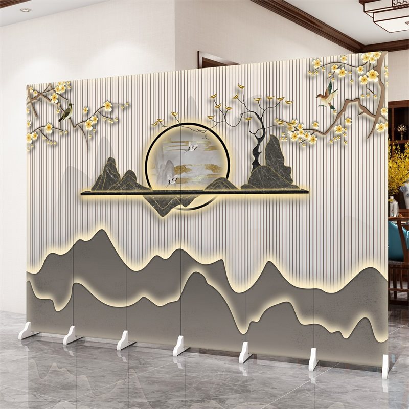 中国式屏風遮断客間遮断寝室玄関移動折り畳み壁オフィス山水画模造室内