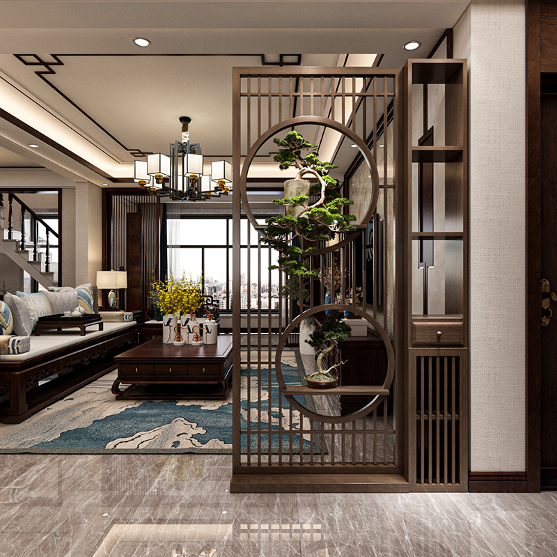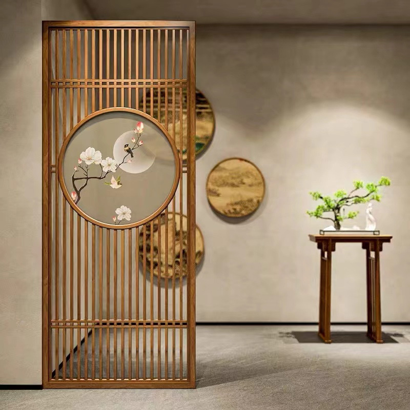 新しい中国風の禅スクリーンパーティションリビングルームモダンシンプルな玄関ドアエントランスホールホームホテルブロック木製シートスクリーン