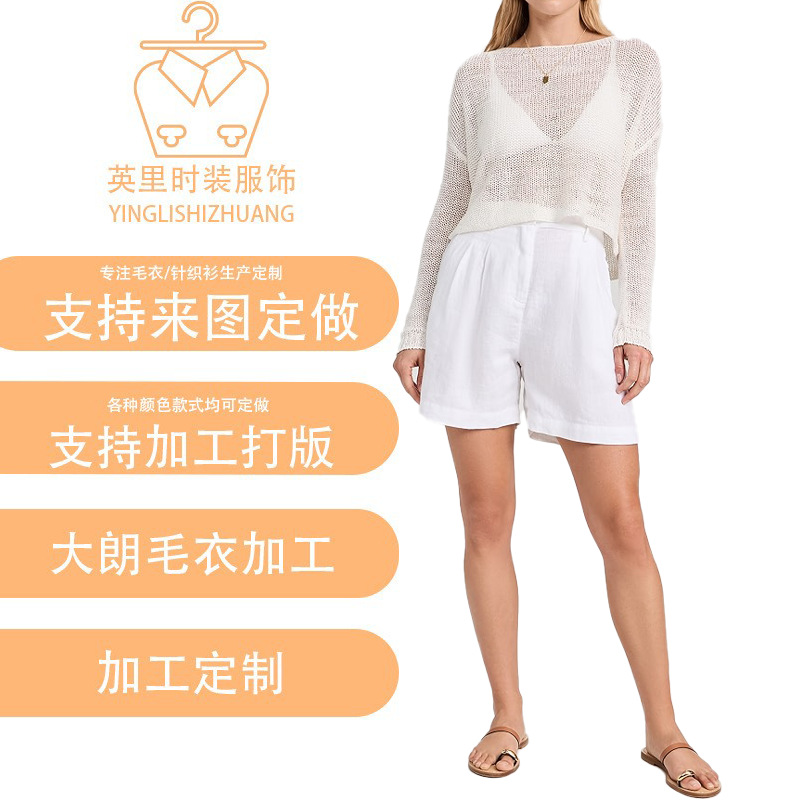 マイルファッション衣料品春と夏の女性のファッションラウンドネック中空シースループルオーバーセーターサンプルパターンとカスタマイズされた図面