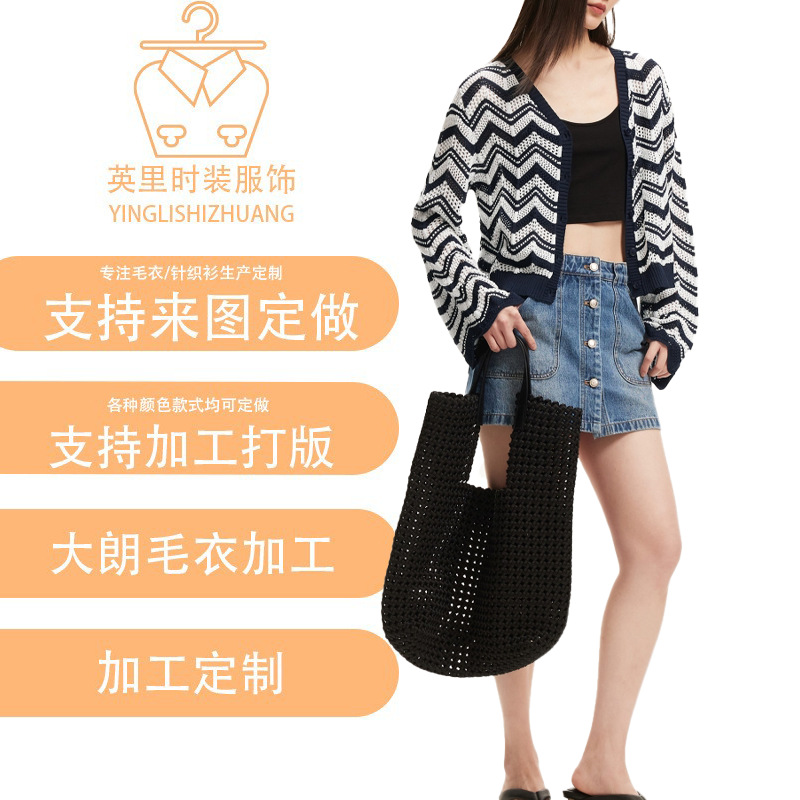 大朗ウール 2025 春夏新作スリムフィットショートソリッドカラーレースニットカーディガン写真とサンプルパターンでカスタマイズ