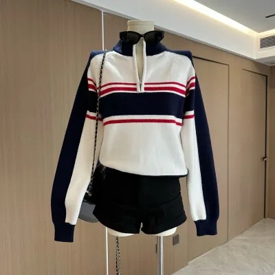 现货慵懒风毛衣女秋冬2024复古条纹针织衫高级感长袖上衣