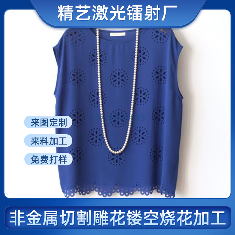 衣料品生地の穴あけ、中空焼花彫刻、特殊形状レーザー切断加工、エンボス彫刻カスタマイズ加工工場