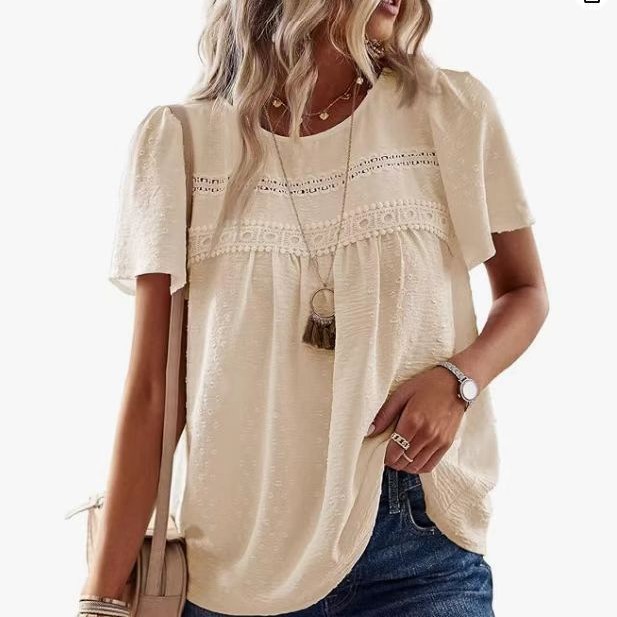 クロスボーダー婦人服シャツアマゾン 2024 春夏貿易カジュアル無地ラウンドネック半袖トップ