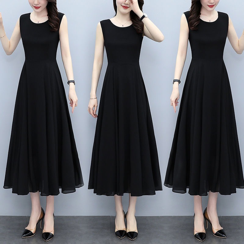 改良金、注文する前に実物の夏の新型の高級な袖なしの黒い気質のワンピースのお母さんを見てください。