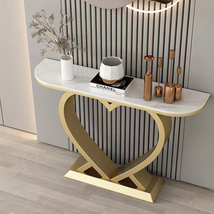 シンプルなエントランスラック、展望台、モダンなエントランスキャビネット、エントランステーブル、軽くて豪華なロックプレートエントランステーブル、半円形エンドテーブル