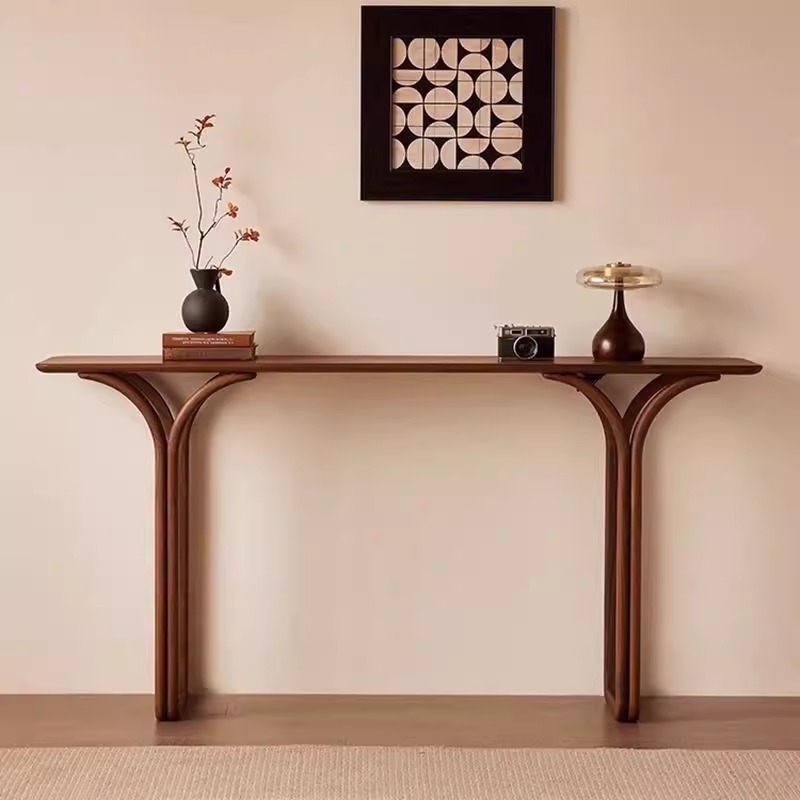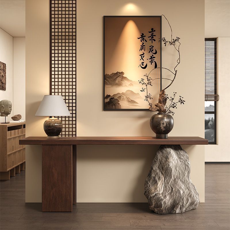 北米産ブラックウォールナットストリップエントリーウッドコンソールテーブル廊下通路装飾新しい中国風アートロックエントランス