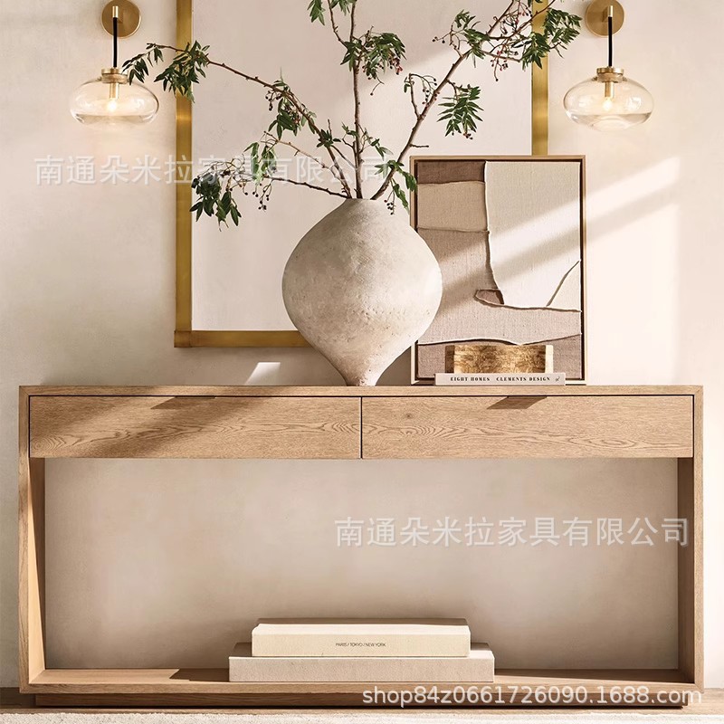 アメリカンカントリーレトロ無垢材玄関ホールコンソールテーブルわびさびスタイルモダンシンプルオーク装飾廊下サイドテーブル