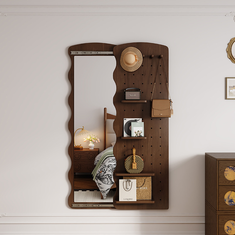中古風の実木の玄関は服の鏡を着て壁の穴の板の化粧の鏡を貼ります。