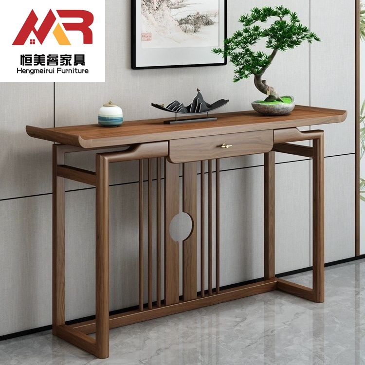 新中式無垢材柵玄関台ウォールナット供物台香炉神台家庭用玄関飾り棚供物台テーブル