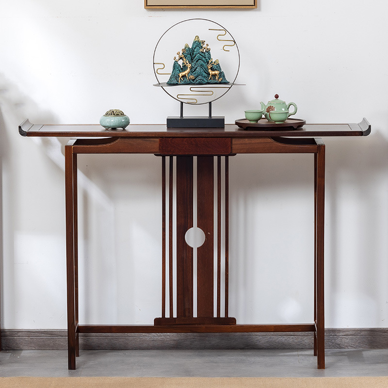 J^ 新中国風のコンソールテーブル、玄関の壁に沿った長いテーブル、無垢材の香炉、テーブル、ストリップテーブル、禅風のエンドビュー