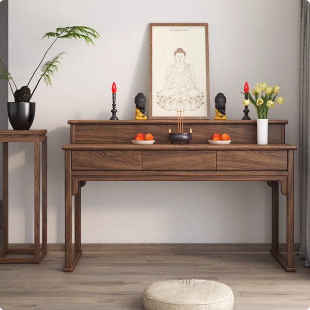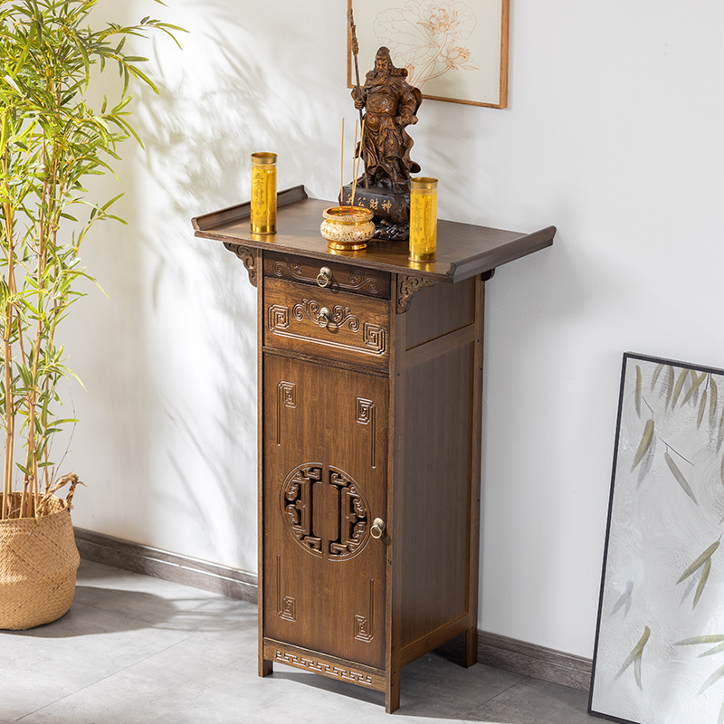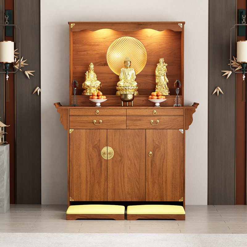 ウォールナット製祭壇、家庭用仏壇、新しい中国風の縦型キャビネット、仏壇、無垢材の富の神の祭壇、小さな祭壇