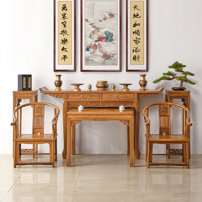 老楡木供卓仏壇実木供仙卓神台神案中国式観音財神供卓仏壇堂屋香案