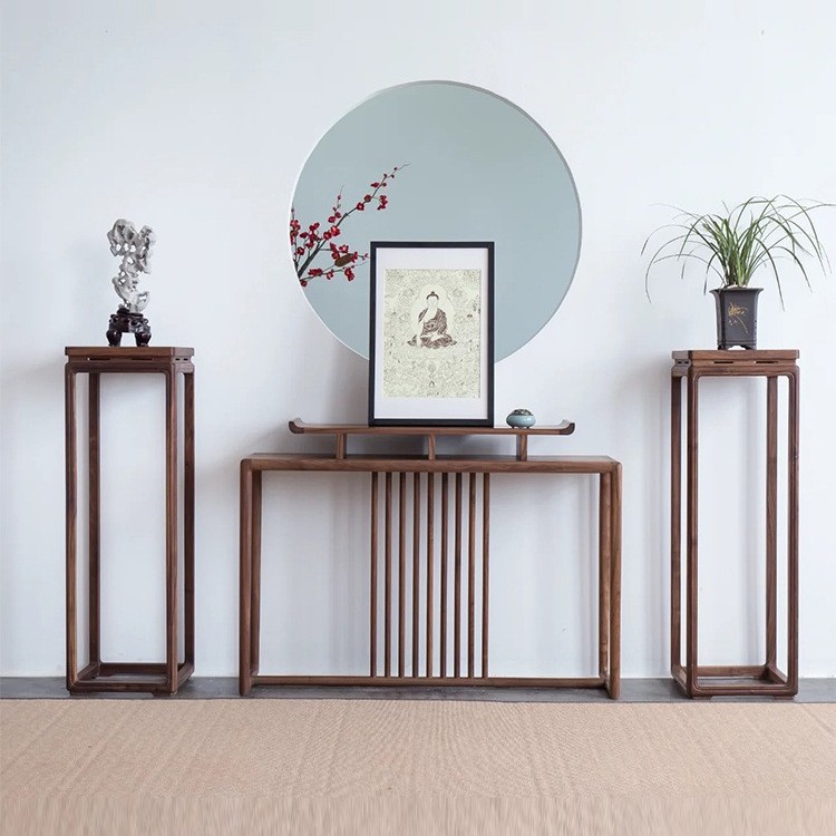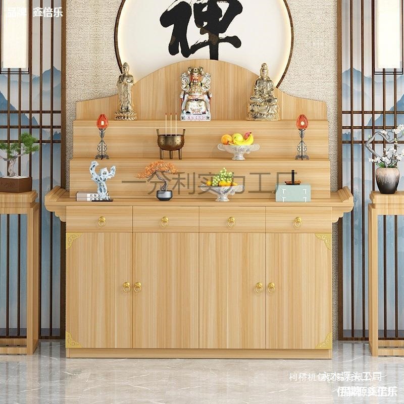 玄関キャビネット、モダンでシンプルな竹製、新中式供物台、家庭用リビングルーム仏壇、大型香炉、壁掛け式無垢材