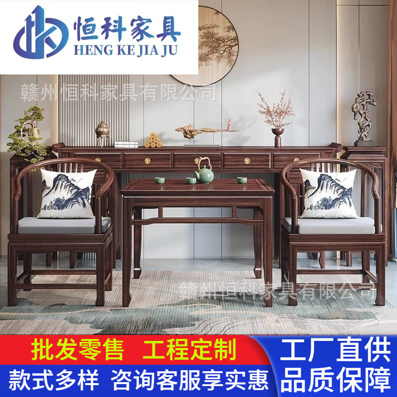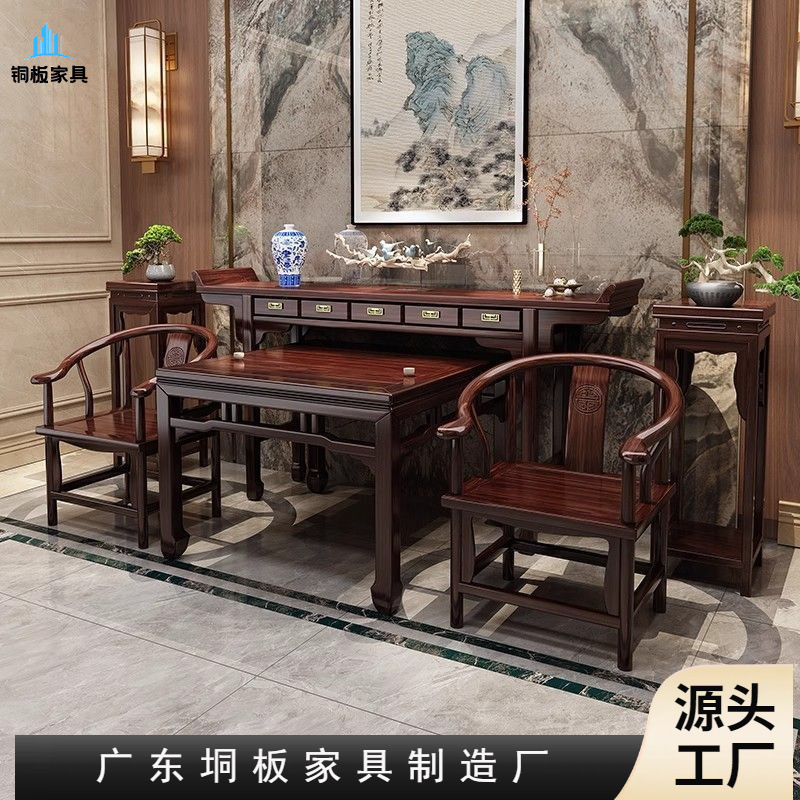 中国式実木霊芝中堂六点セット紫金檀木供卓四点セット模造古条案貢卓工場直供