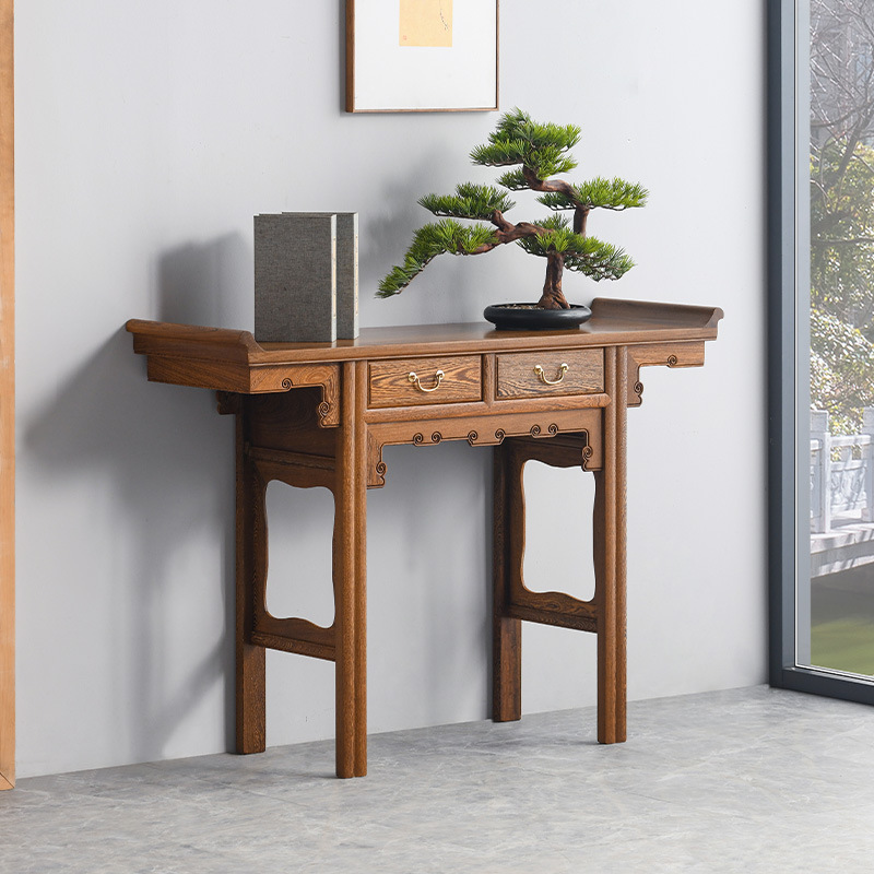 玄関のテーブルの家庭用は古楡のほぞをまねて、まっすぐな足の家庭用の実木の財神は台の新しい中国式の香案の仏壇にテーブルを提供します。