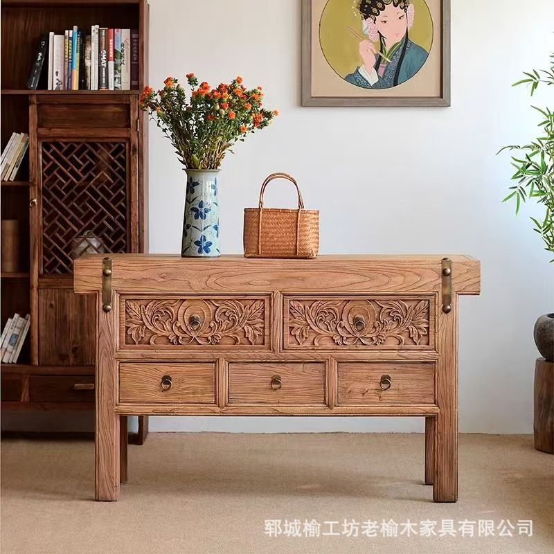 中国式の古い楡の木の案件のいくつかのレトロな玄関の物置棚は壁の高足のテーブルの仏台のテーブルに寄りかかって家庭用にテーブルを提供します。