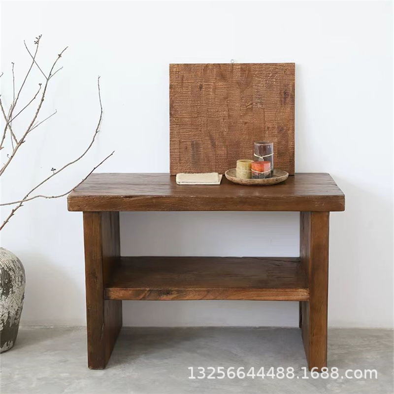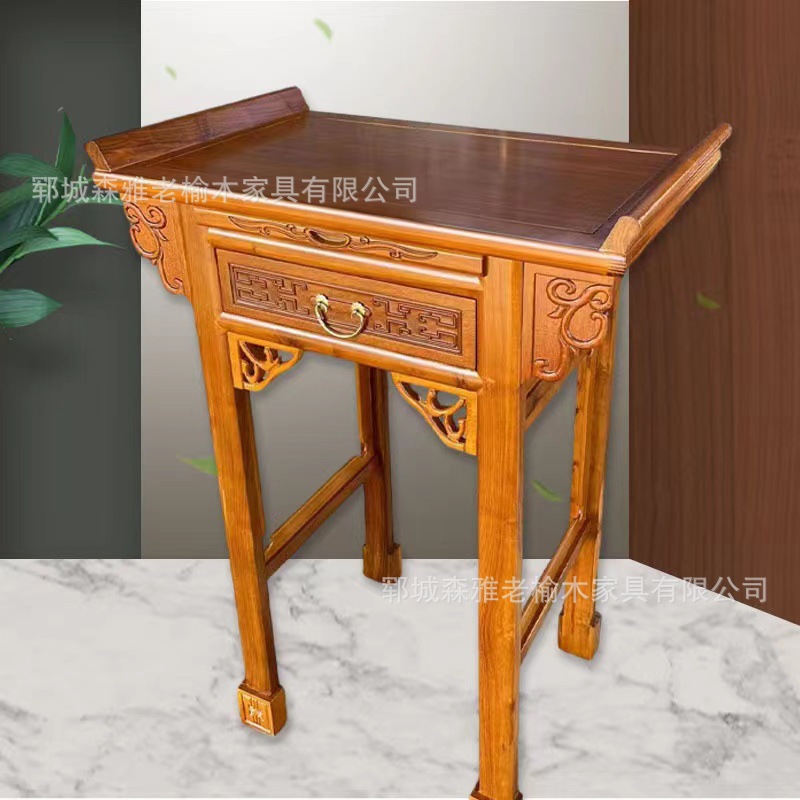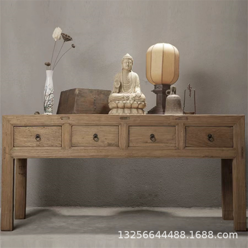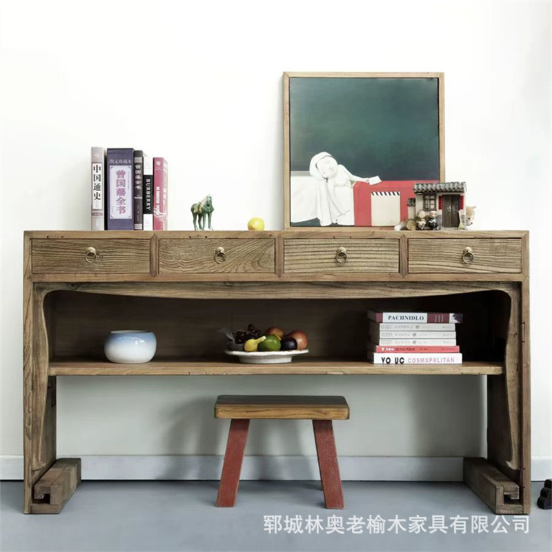 老楡木玄関卓実木ホール装飾棚無漆門板家具新中国式テーブル寝室学習机