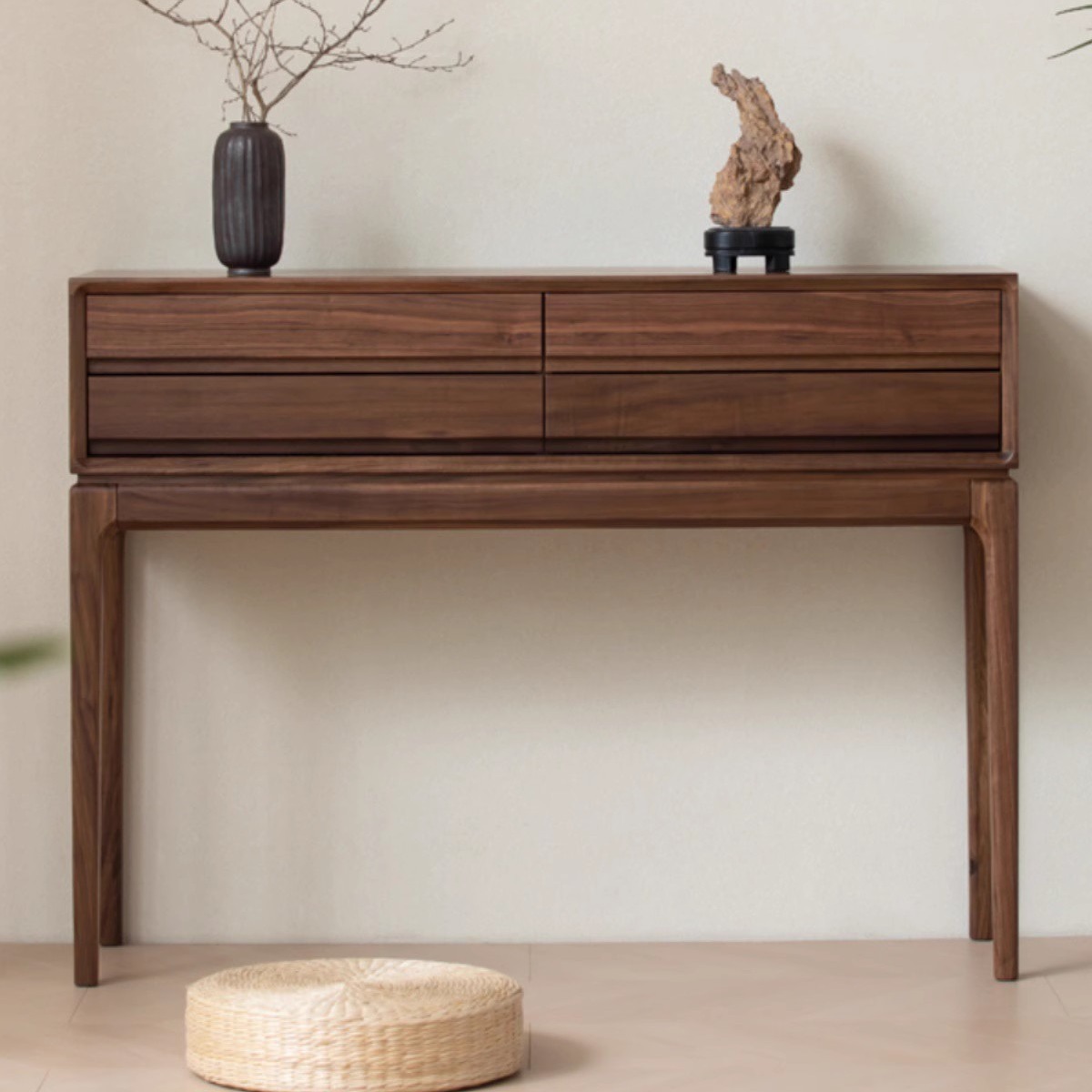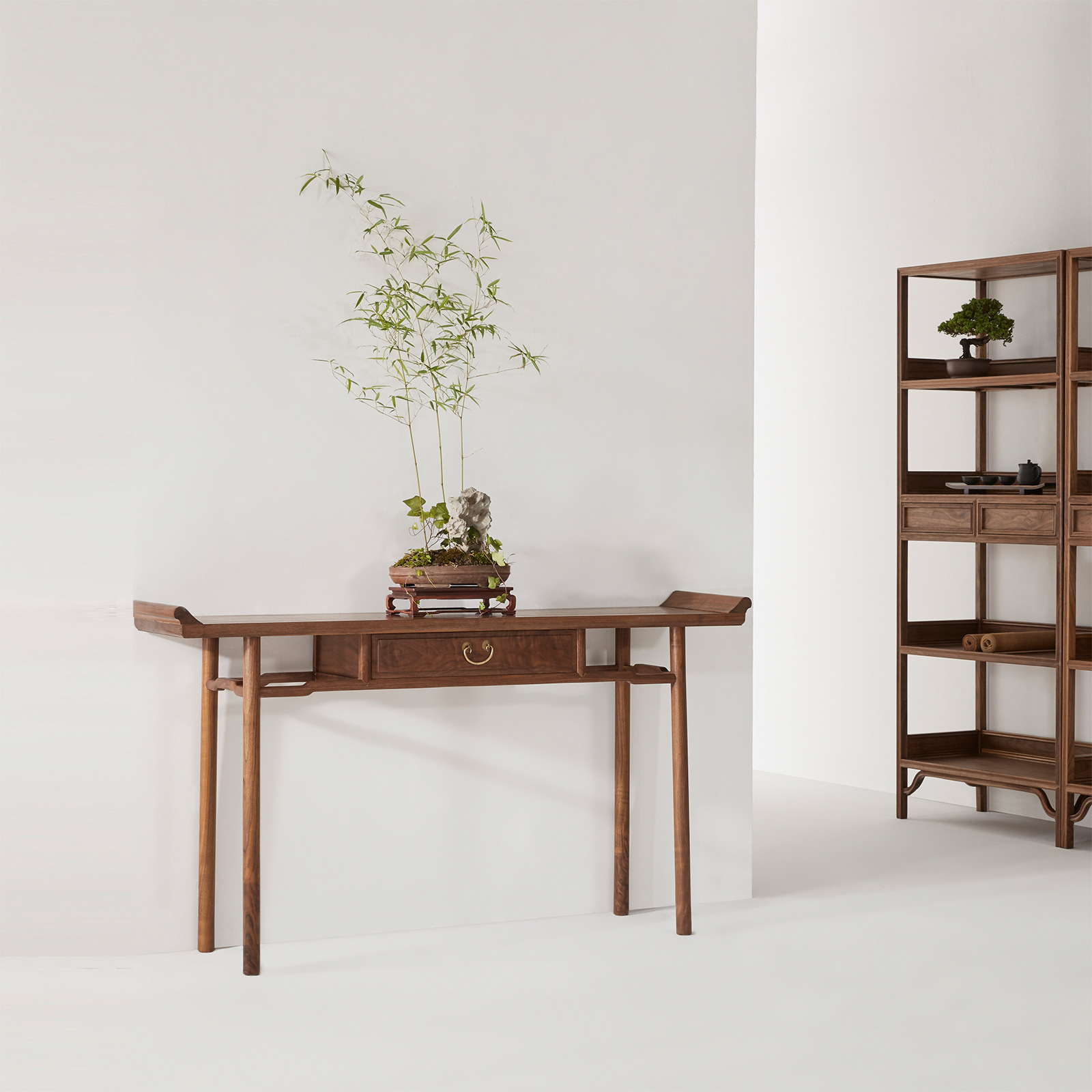 禅意新中国式玄関テーブル黒胡桃実木条案玄関台模造古供卓シンプルバー