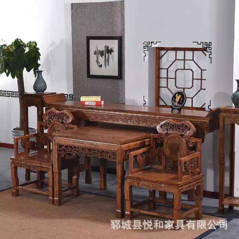 农村堂屋供桌组合 条案 佛桌 实木 供台 榆木 明清仿古
