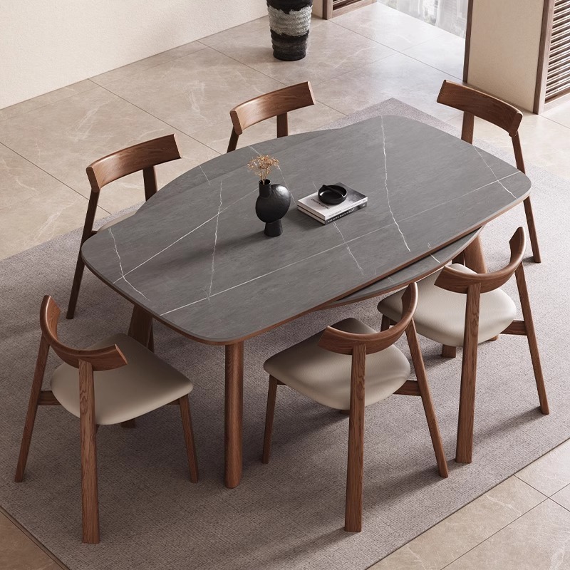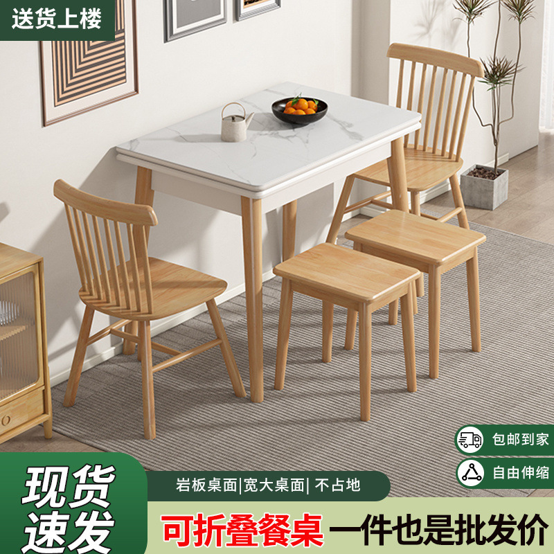 スレートダイニングテーブル折りたたみダイニングテーブルと椅子の組み合わせ家庭用小型伸縮式モダンテーブルシンプルな無垢材長方形工場