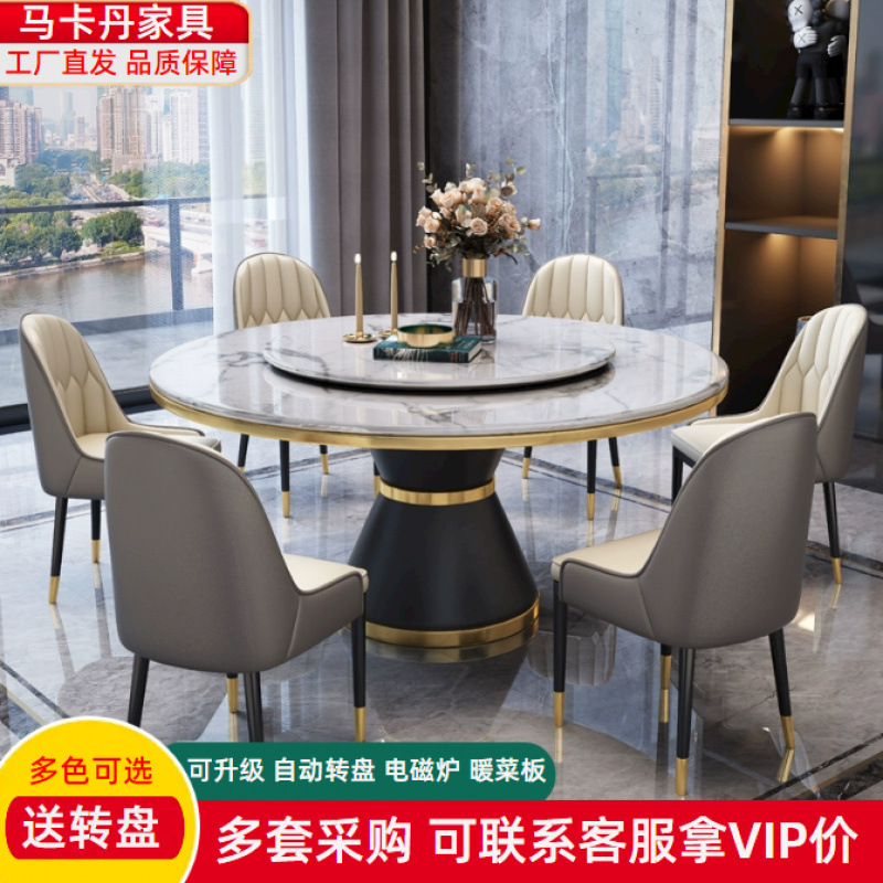 イタリアのライト高級ダイニングテーブルと椅子の組み合わせホテルモダンラウンドテーブルシンプルなラウンドロックプレート小型家庭用ターンテーブルダイニングテーブル