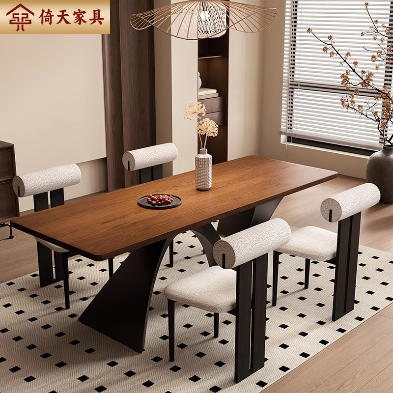 中世スタイルの全無垢材ダイニングテーブル、モダンでシンプルな小さなアパートの長方形のダイニングテーブル、イタリアンライト高級ウォールナットデスク