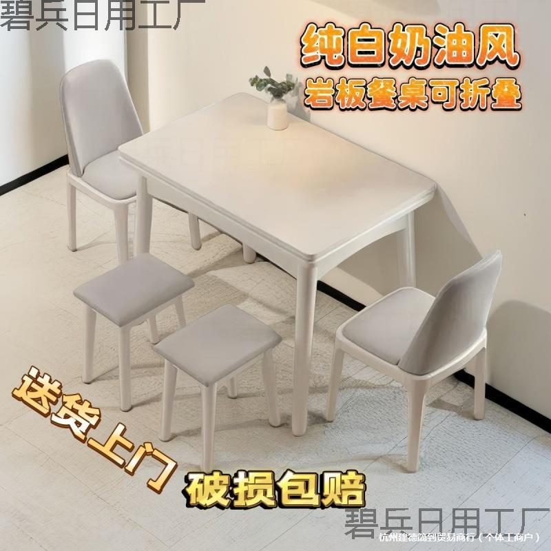 スレート折りたたみダイニングテーブル家庭用小型ダイニングテーブル新しい折りたたみ無垢材ダイニングテーブルと椅子の組み合わせクリームスタイルホワイト