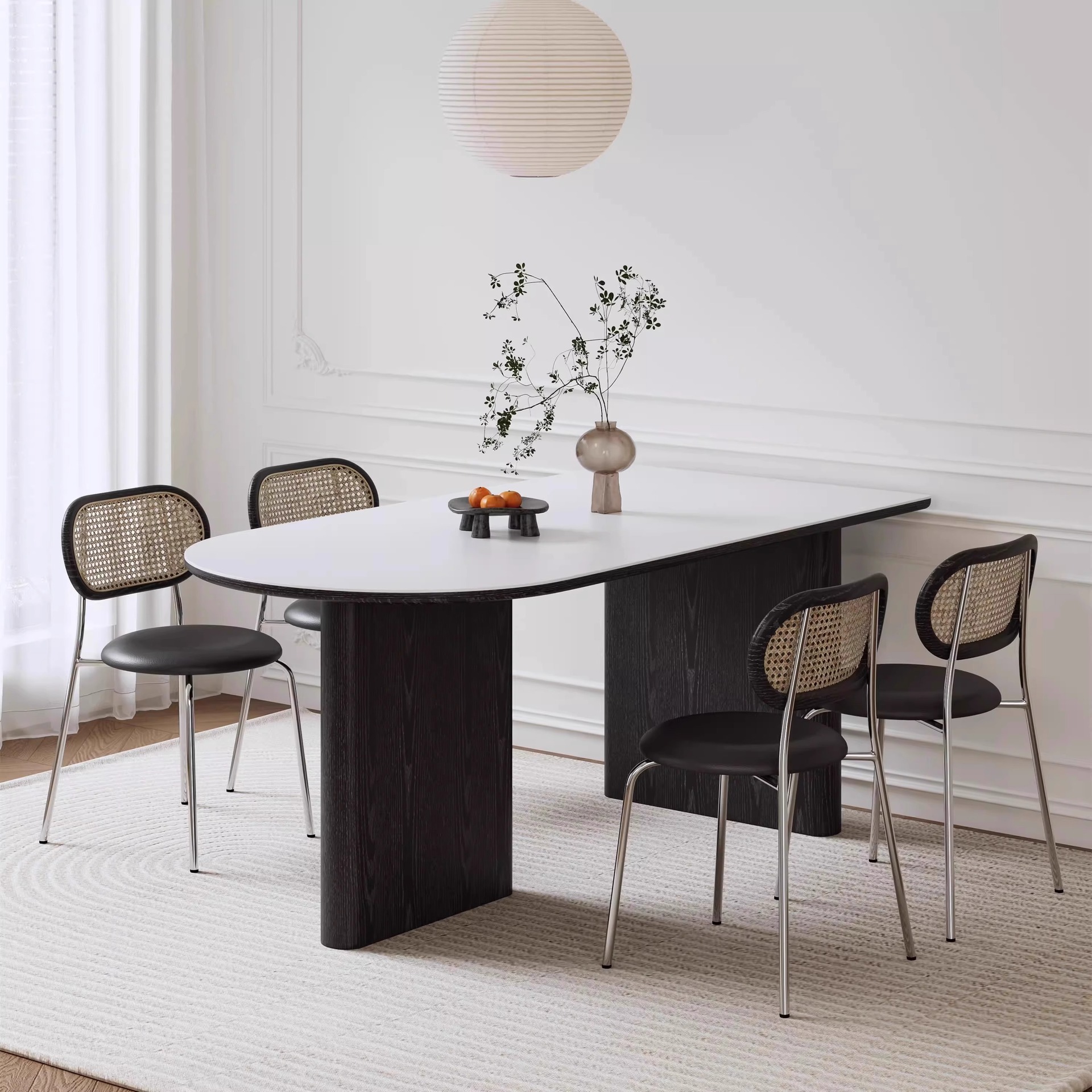 北欧の純白のスレートダイニングテーブルと椅子、家庭用の小さなアパート用、純黒のミニマリストの軽い高級感、新しい純黒のダイニングテーブル