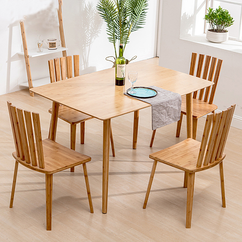 竹製ダイニングテーブル、小さなアパート、モダンでシンプルなテーブルと椅子の組み合わせ、ラウンドテーブル、長方形のダイニングテーブル、家庭用の小さなテーブル