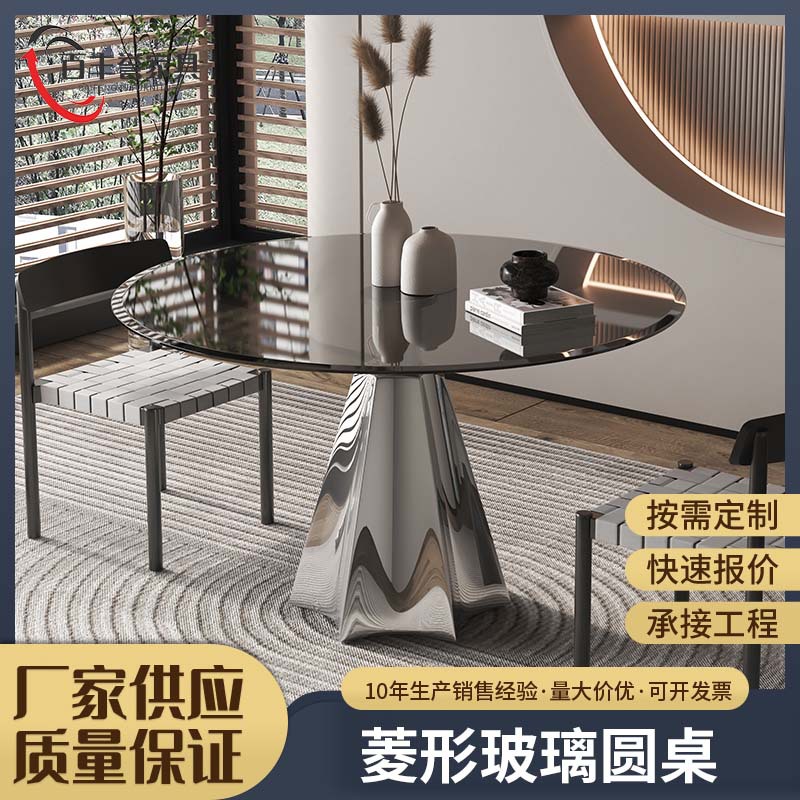軽量高級ガラス製小さなラウンドテーブル、家庭用小さなダイニングテーブル、モダンでシンプルなコーヒーテーブル、ステンレス製のシルバーホワイトのコーナーテーブル