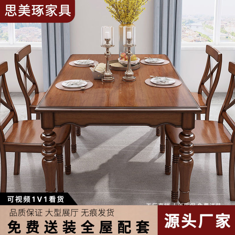 北欧モビーンネットレッドダイニングテーブル無垢材長方形ダイニングテーブルシンプルレストランレストランログリビングルーム大型ダイニングテーブル