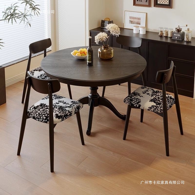 アメリカンラウンドホワイトワックス木目無垢材ダイニングテーブルと椅子ブラックフレンチミッドレトロスタイルラウンドテーブル北欧小さなアパートのダイニングテーブル