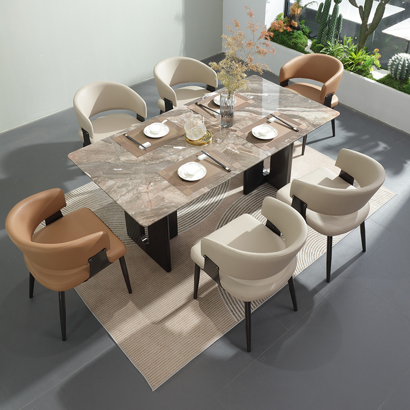 イタリアのライト高級長方形スレートダイニングテーブルと椅子の組み合わせ、家庭用小型明るい光高級モダンシンプルなダイニングテーブル