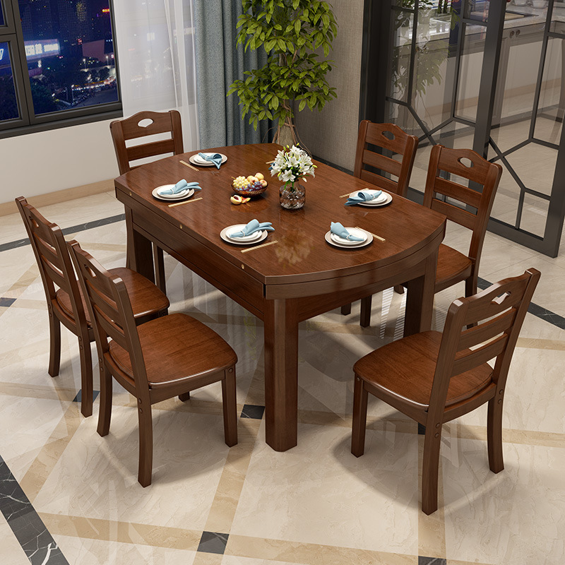 ソース無垢材のダイニングテーブルと椅子の組み合わせ、伸縮式折りたたみ式、モダンでシンプルな家庭用小型ラウンドダイニングテーブル、6人用