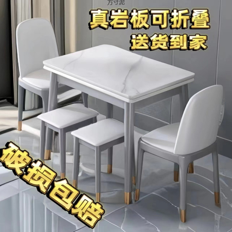 スレートダイニングテーブル折りたたみダイニングテーブルと椅子の組み合わせ家庭用小型伸縮式モダンテーブルシンプルな無垢材長方形工場