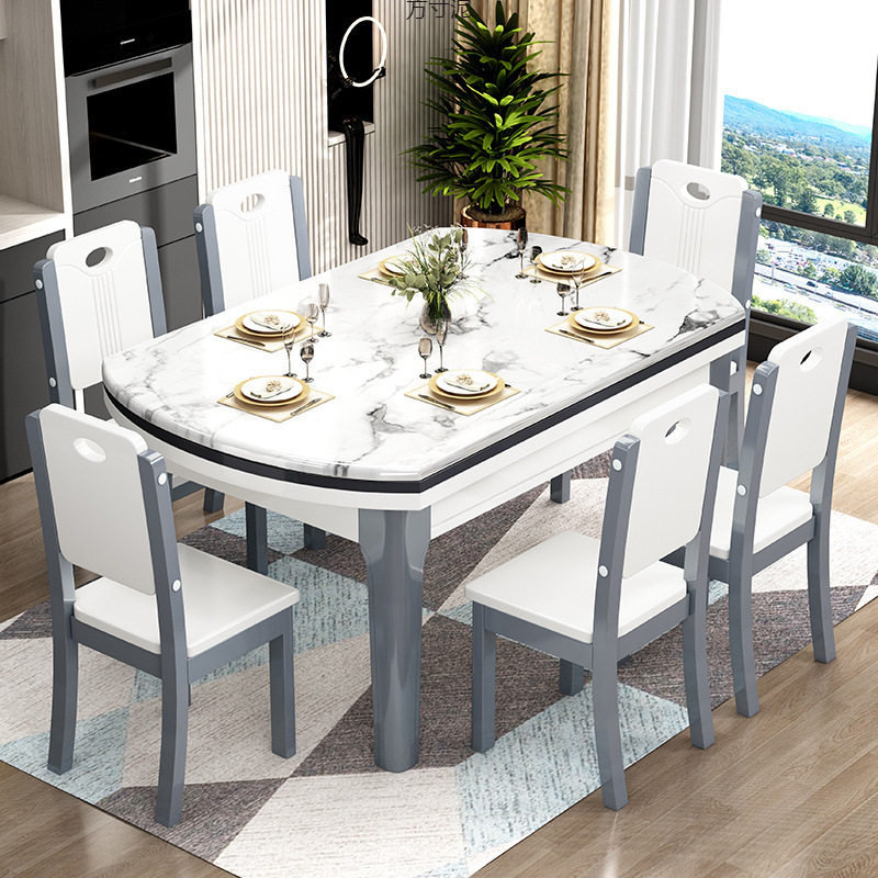 大理石のダイニングテーブルと椅子の組み合わせ無垢材のシンプルな家庭用小型拡張可能な折りたたみ式正方形と円形の兼用ダイニングテーブル