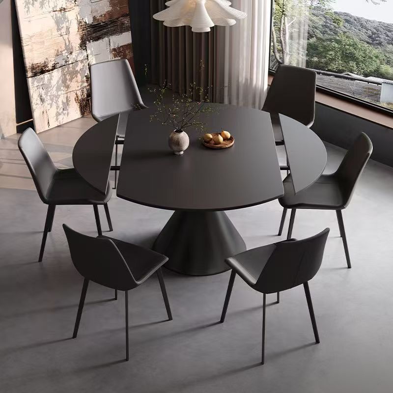 光沢のあるスレートのダイニングテーブルと椅子の組み合わせ無垢材の伸縮式折りたたみ式モダンなシンプルな可変ラウンドテーブル家庭用小型アパートメント