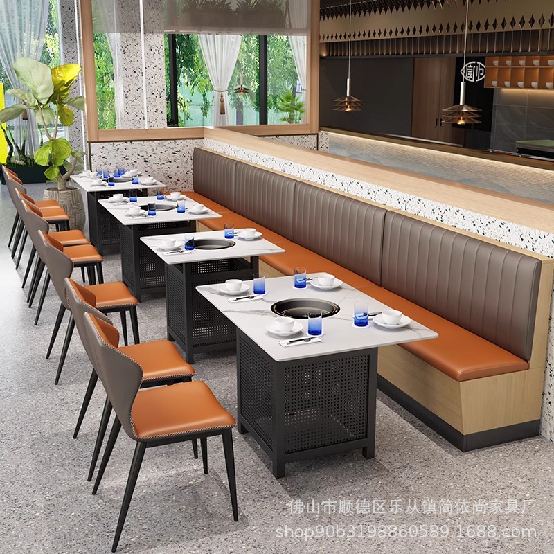 火鍋店のテーブルと椅子の電磁ストーブが一体となっています。